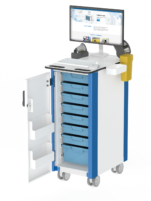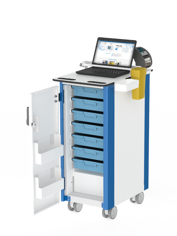 Secure, robust and reliable; The OmniCart Solo is a fixed height drugs cart with a slim profile and a multitude of uses, such as EPMA, Phlebotomy, Theatres, Pharmacy’s and Wards.